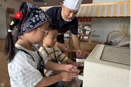 当国庆遇上中秋,孩子们在美食坊里体验了亲手制作月饼的乐趣。孩子们在点心师傅的的指导下,认真地学习着制作月饼的步骤。揉、捏、压,每一个动作他们都非常认真、专注。当一个个香喷喷的月饼新鲜出炉时,孩子们的脸上洋溢着幸福的笑容。他们品尝着自己亲手制作的月饼,感受着劳动带来的快乐和成就感。